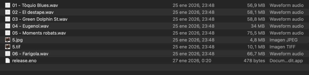 Enregistrat i mesclat per Vidal Soler el 4 de gener de 2026 a El Colmado (Barcelona).