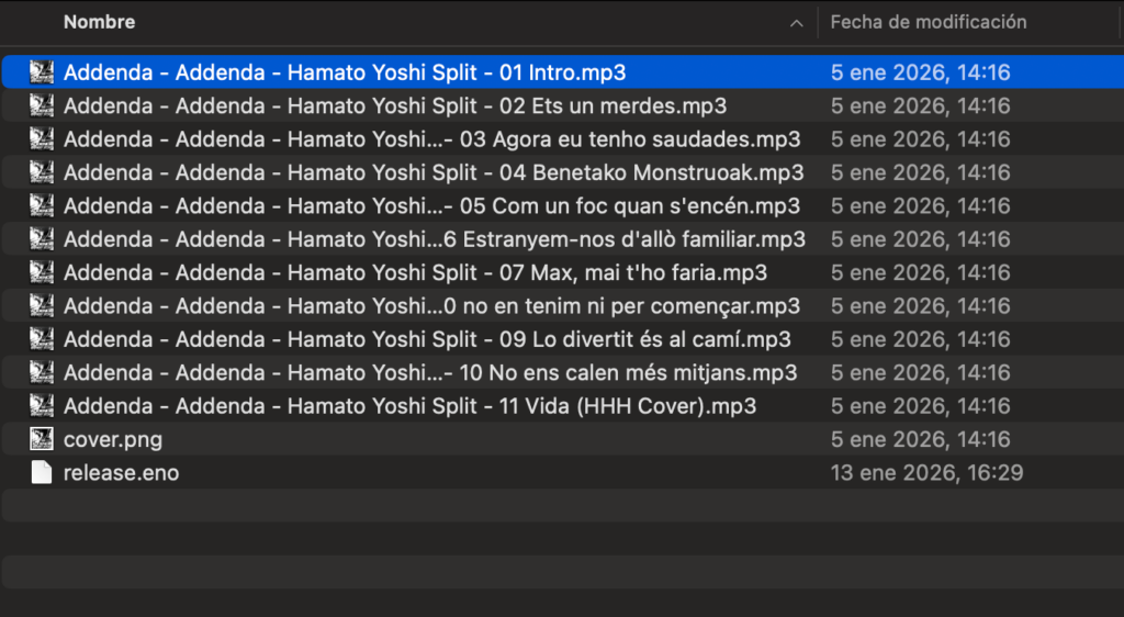 Example realese.eno from album from Vidal: